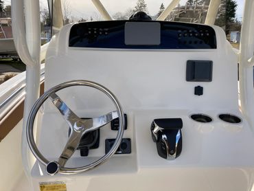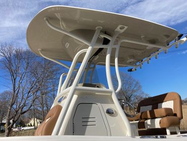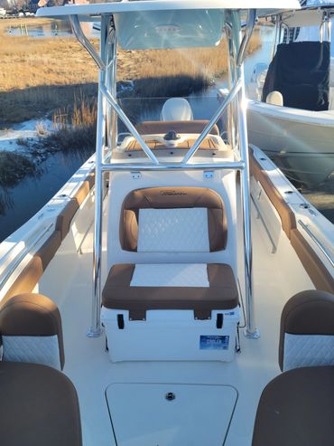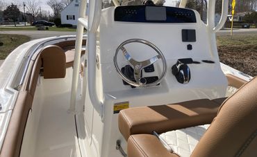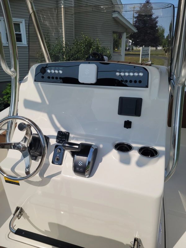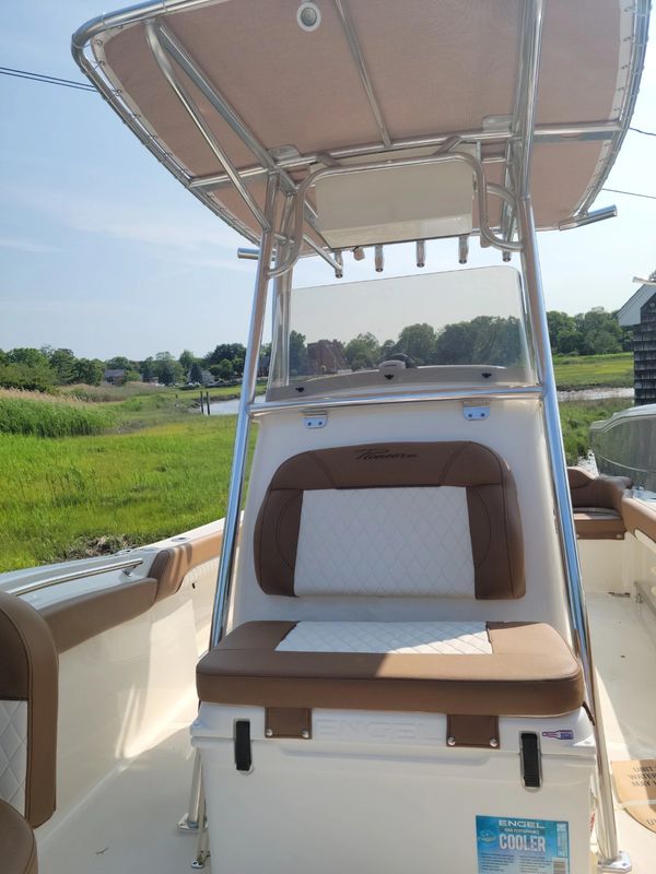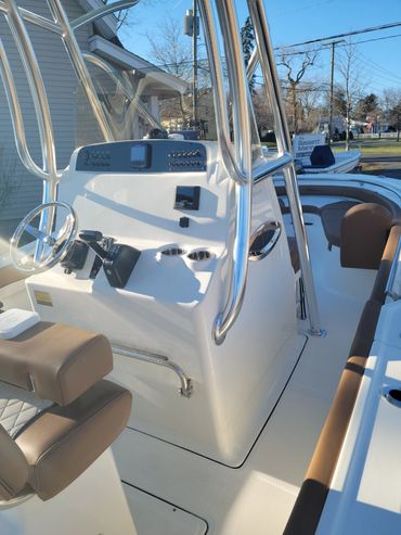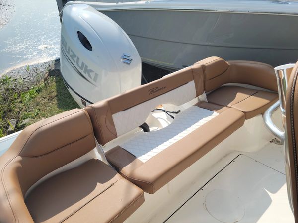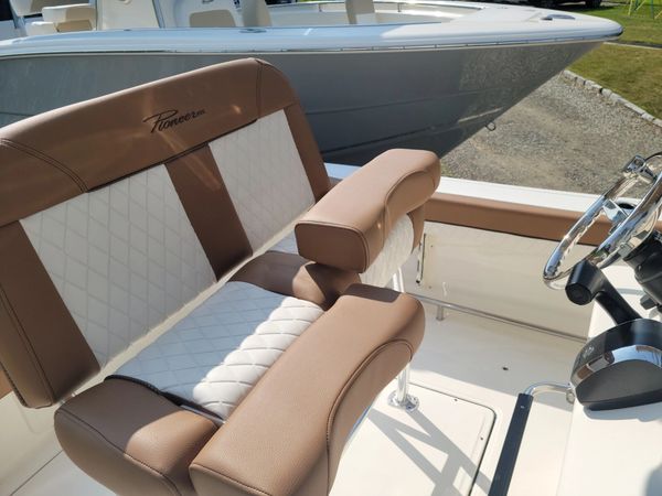 22' 1" Pioneer 222 Islander, White Hull, T-Top Package, Marine Toilet Dockside Pump out, Fresh Water Wash Down Kit, Raw Water Wash Down Kit, JL Audio Stereo 4 Speaker, Console Cover, Freight and Prep are Included